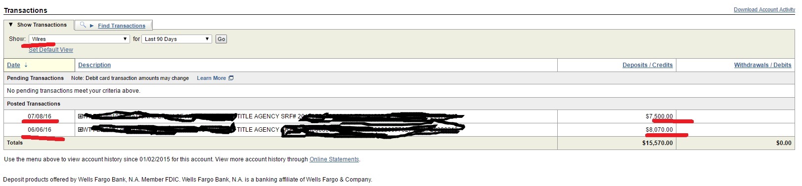 bank wire for $8,070 and paypal payment for $850